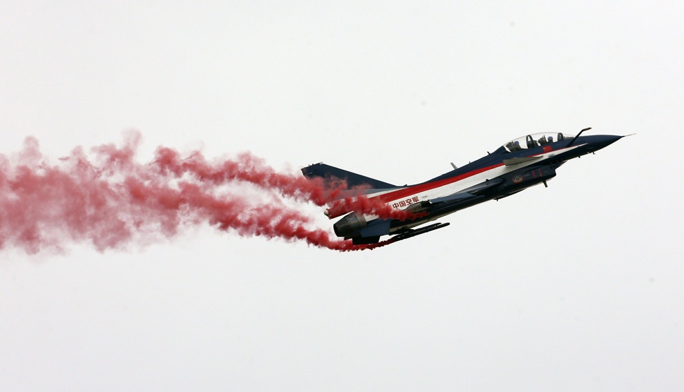 | Chiếc J-10 của đội bay Bát Nhất, Không quân Quân Giải phóng Nhân dân Trung Quốc thực hiện màn bay đơn tại triển lãm hàng không MAKS-2013, tổ chức tại sân bay quân sự Zhukovsky, ngày 30/8 vừa qua. |