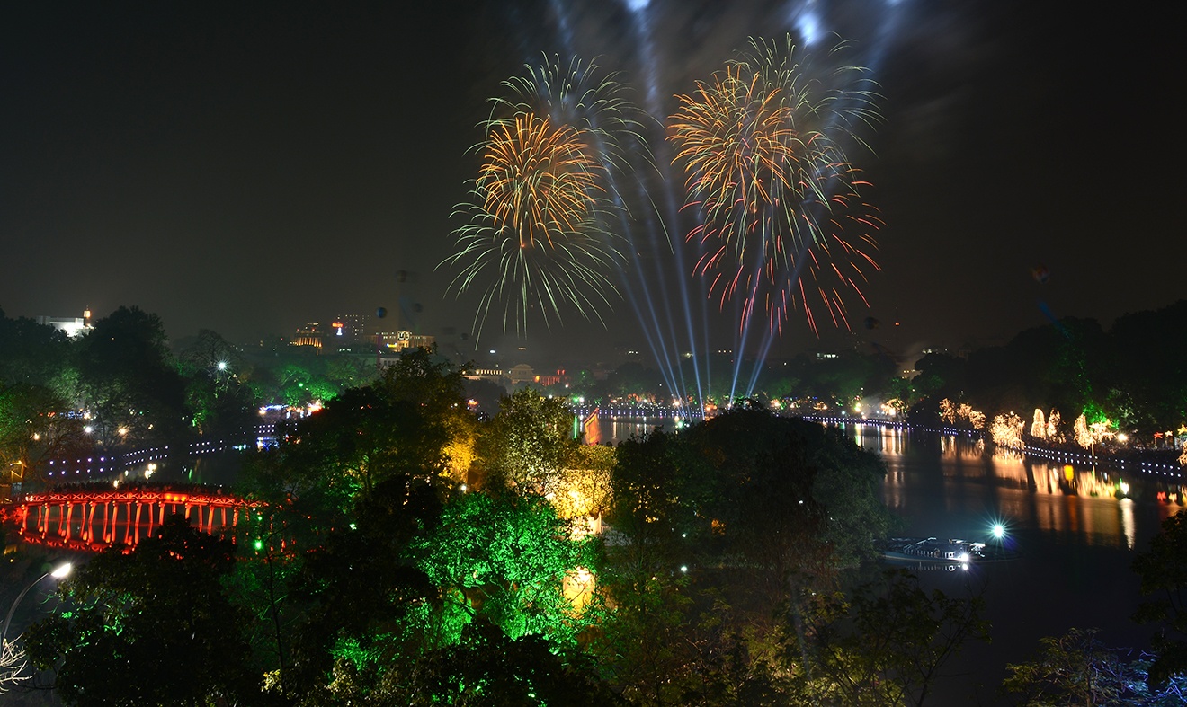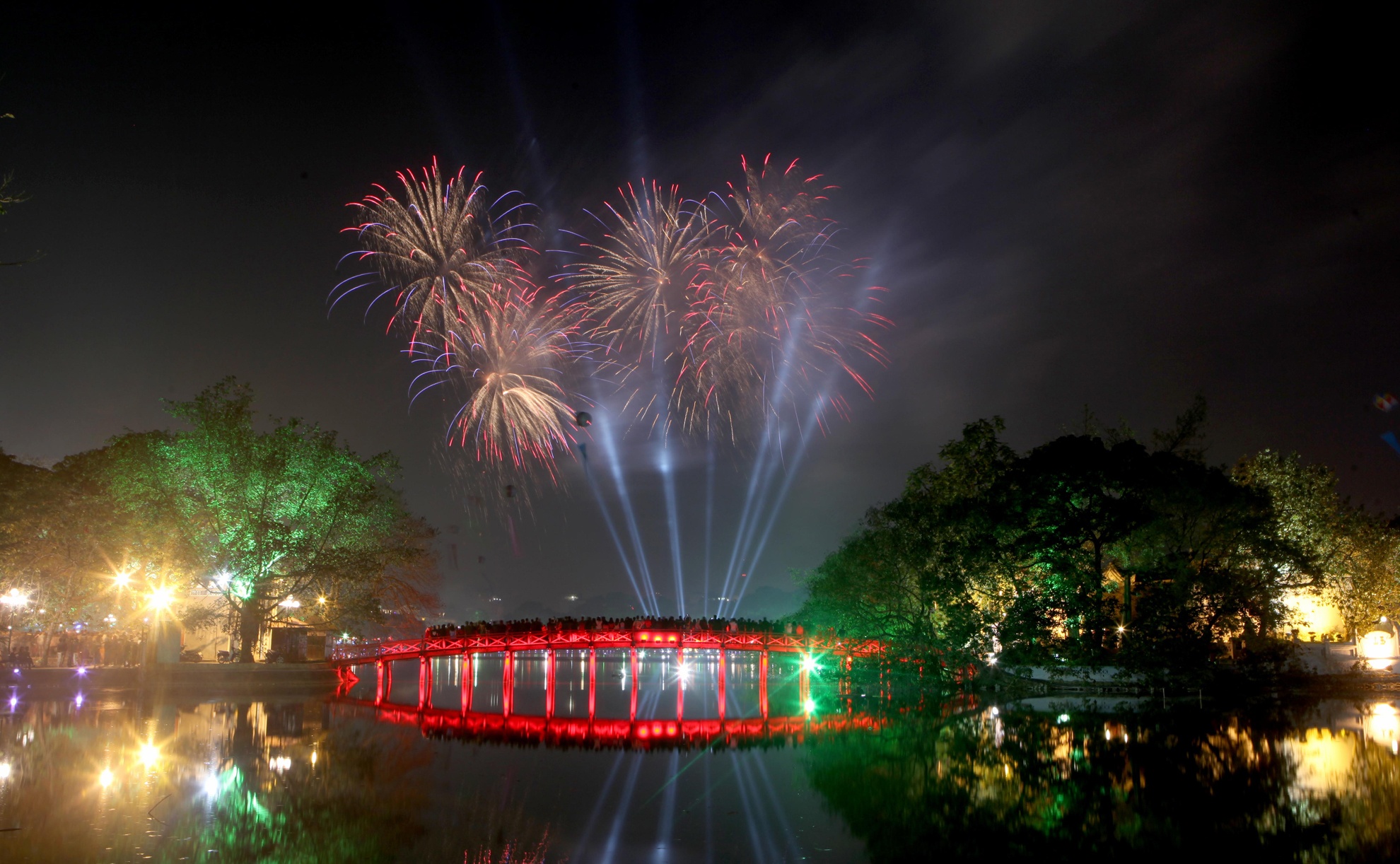 | Hồ Gươm được cho là nơi bắn pháo hoa đẹp nhất trong số 29 điểm tại Hà Nội đêm giao thừa Giáp Ngọ. |
