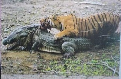 | Sát thủ đầm lầy và ông ba mươi đang chiến đấu. Hổ có vẻ đang giành lợi thế. Ảnh: Blogspot. |