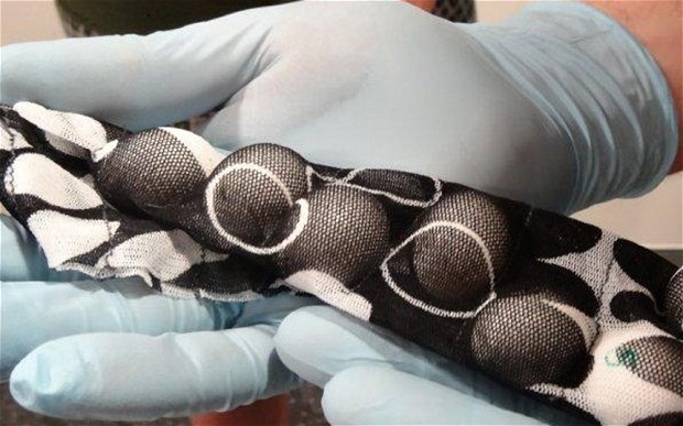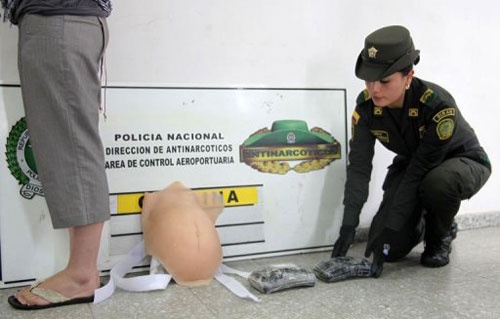 | Tháng 9/2013, cảnh sát Colombia đã phát hiện 2 kg ma túy giấu trong một chiếc bụng bầu giả bằng nhựa cứng của một nữ du khách người Canada khi cô đang hoàn tất thủ tục xuất cảnh tại sân bay quốc tế Bogota. Ảnh: AFP |