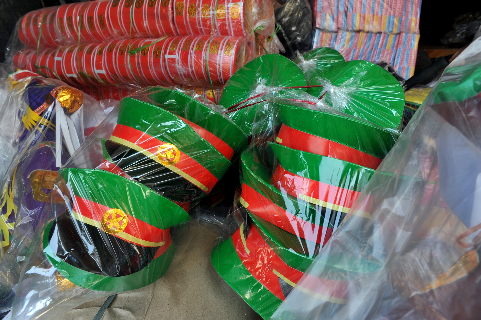 Mũ công an làm bằng bìa carton có kích cỡ gần như thật.