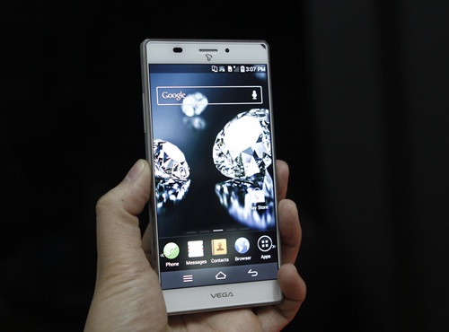 3. Pantech Vega Iron (giảm 600.000 đồng) Vega Iron được đánh giá là smartphone có thiết kế độc đáo nhất của Pantech. Model này dùng một bộ khung nguyên khối bằng thép, các cạnh vuông vức cực kỳ nam tính, viền màn hình mỏng, kích thước 5 inch cũng rất vừa tay. Hiện tại, Vega Iron (Sky A870) nằm ở phân khúc tầm trung với giá bán 8,2 triệu đồng, giảm hơn nửa triệu đồng so với một tuần trước. Ảnh Thành Duy. |
