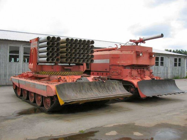 Phương tiện cứu hỏa Pozhtechnika MRU GVT-150 được tạo ra từ một chiếc máy xúc. Hệ thống bánh xích đỡ phần thân nặng tới 19 tấn của chiếc xe. Nó có thể phun ra 150 lít nước mỗi giây nhưng Pozhtechnika chỉ di chuyển với vận tốc 3,2 km/h. |