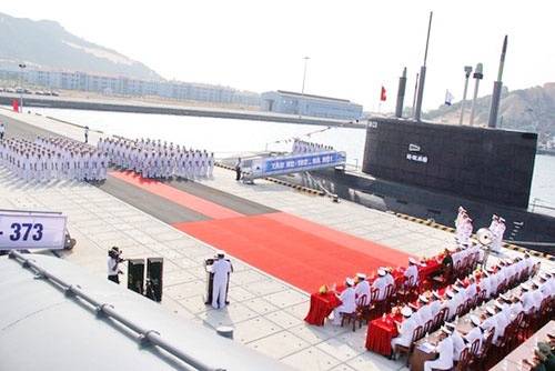 Ngày 15/1/2014, Quân chủng Hải quân tổ chức lễ tiếp nhận và thượng cờ tổ quốc trên tàu ngầm Kilo 636 đầu tiên của Việt Nam, HQ-182 Hà Nội. Đô đốc Nguyễn Văn Hiến - Ủy viên Trung ương Đảng, Thứ trưởng Bộ quốc phòng kiêm Tư lệnh Quân chủng Hải quân Việt Nam - chủ trì buổi lễ. Ảnh: QDND |