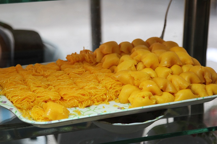 Bánh trứng là một trong những thành phần hấp dẫn của món chè Campuchia. Bánh làm hoàn toàn từ trứng, có mùi thơm đặc trưng.