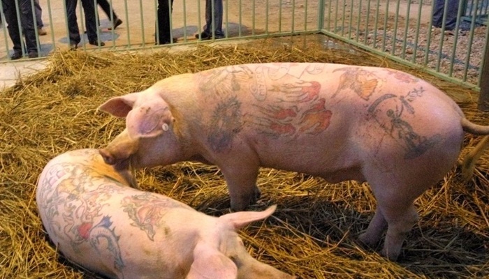 | Những con lợn được xăm mình với những hình ảnh nghệ thuật thuộc sở hữu của tỷ phú Mỹ. |