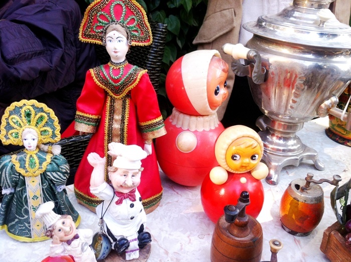 Những con búp bê hay những con lật đật Nga đã rất quen thuộc trong tuổi thơ của nhiều người giờ cũng xuất hiện tại phiên chợ này như một món vật rất cổ và hiếm. |