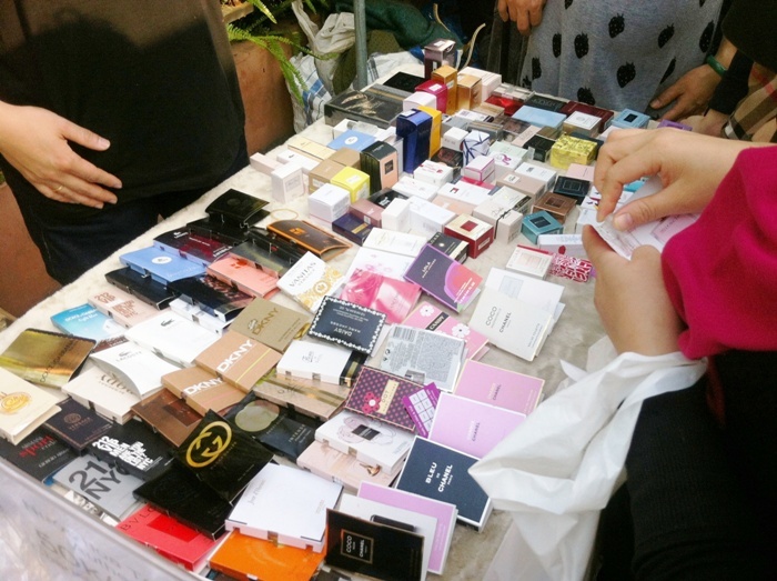 Gian hàng nước hoa mini được đông đảo các bạn nữ quan tâm và khen ngợi. |