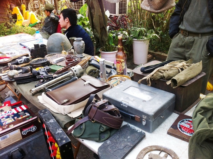 Rất nhiều những dụng cụ của bộ đội Việt Nam trong thời chiến xuất hiện tại phiên chợ này. |