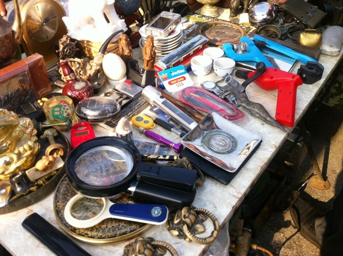 Những vật độc, lạ, hiếm như vỏ lựu đạn hay những vật dụng quân đội từ thời chiến được bày bán khá nhiều tại đây. |