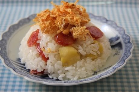 Nhiều người nghĩ rằng nấu xôi rất cầu kỳ, nhưng chỉ cần nấu với nồi cơm điện, món xôi vẫn thơm ngon và tiết kiệm thời gian. Lạp xưởng và ruốc có thể chuẩn bị sẵn ở bếp. Vậy chẳng có lý do gì để từ chối món xôi vào bữa sáng.