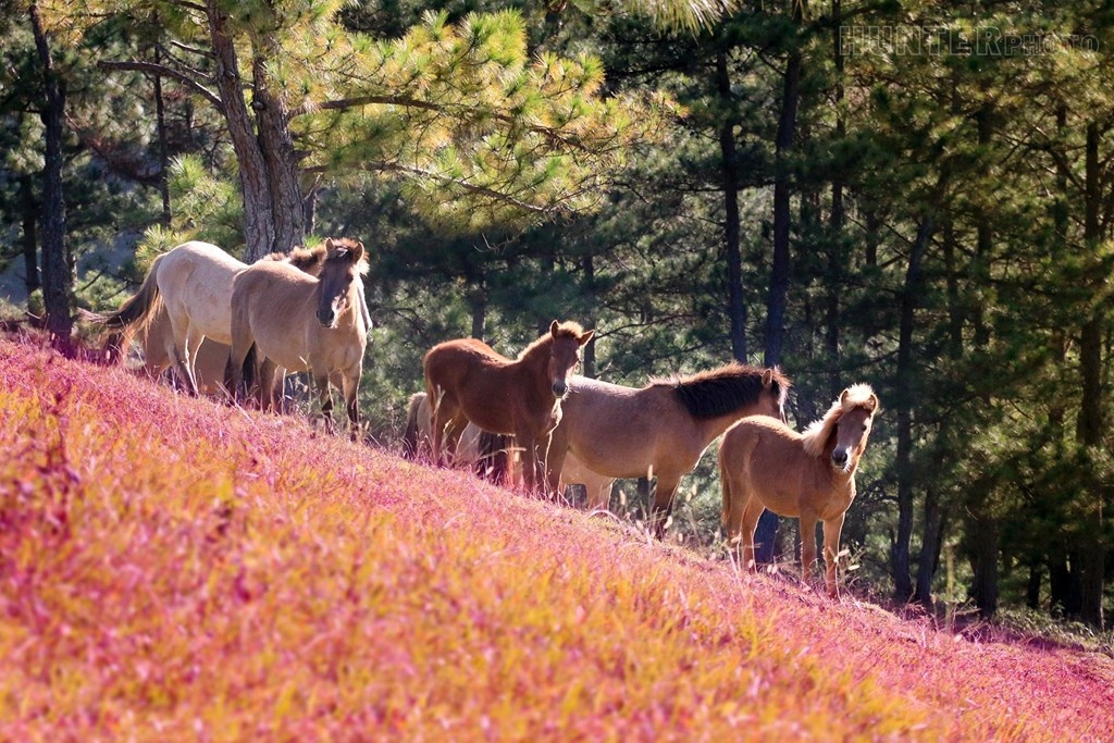 Cỏ hồng Đà Lạt: Cỏ hồng hay còn gọi là cỏ đuôi chồn thường mọc thành từng cụm, thân thẳng đứng vươn cao lên trời như ngọn phi lao. Bông của cỏ hơi ngả màu hồng tím, lông mềm mượt. Ảnh: Hunter. |