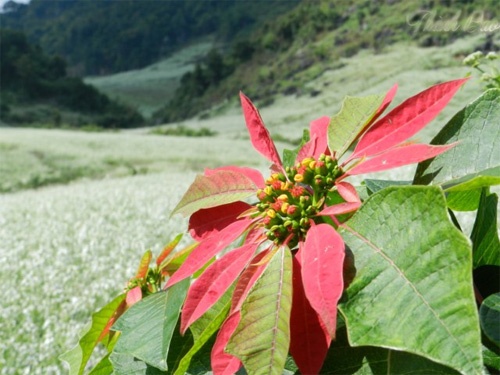 Hoa trạng nguyên ở Mộc Châu không nhiều như hoa cải, song sắc đỏ nổi bật của loại hoa này trên cánh đồng hoa cải trắng muốt cũng khiến không ít phượt thủ, nhiếp ảnh gia "tương tư". Ảnh: Giangvan. |