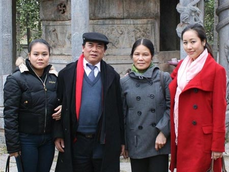 | Linh Nga chụp hình cùng bố mẹ và em trai. |