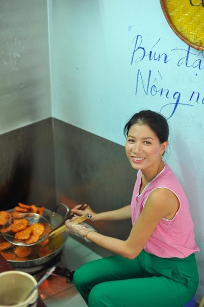 | Nếu như các kiều nữ trên mạnh tay kinh doanh lớn thì chân dài Trang Trần được biết đến với sản phẩm bình dân quen thuộc là bún đậu mắm tôm. Quán Cô Khàn được lấy từ biệt danh của chân dài với hương vị miền Bắc thu hút khá nhiều khách. Trái với hình ảnh cá tính, chuyên nghiệp trên sàn catwalk, khách hàng tới quán bún Cô Khàn dễ dàng thấy chân dài tất bật đôn đảo công việc. Trước khi mở quán, Trang Trần đã mất khá nhiều thời gian để tìm tòi nghiên cứu. |