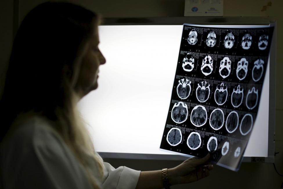 Bác sĩ chuyên khoa thần kinh trẻ em Vanessa Van Der Linden kiểm tra tấm phim X-quang chụp não bộ của bệnh nhi nhiễm Zika. Việc điều trị cho các nạn nhân nhí đang diễn ra nhưng các bác sĩ chưa thể khẳng định khả năng phục hồi của những đứa trẻ kém may mắn. |