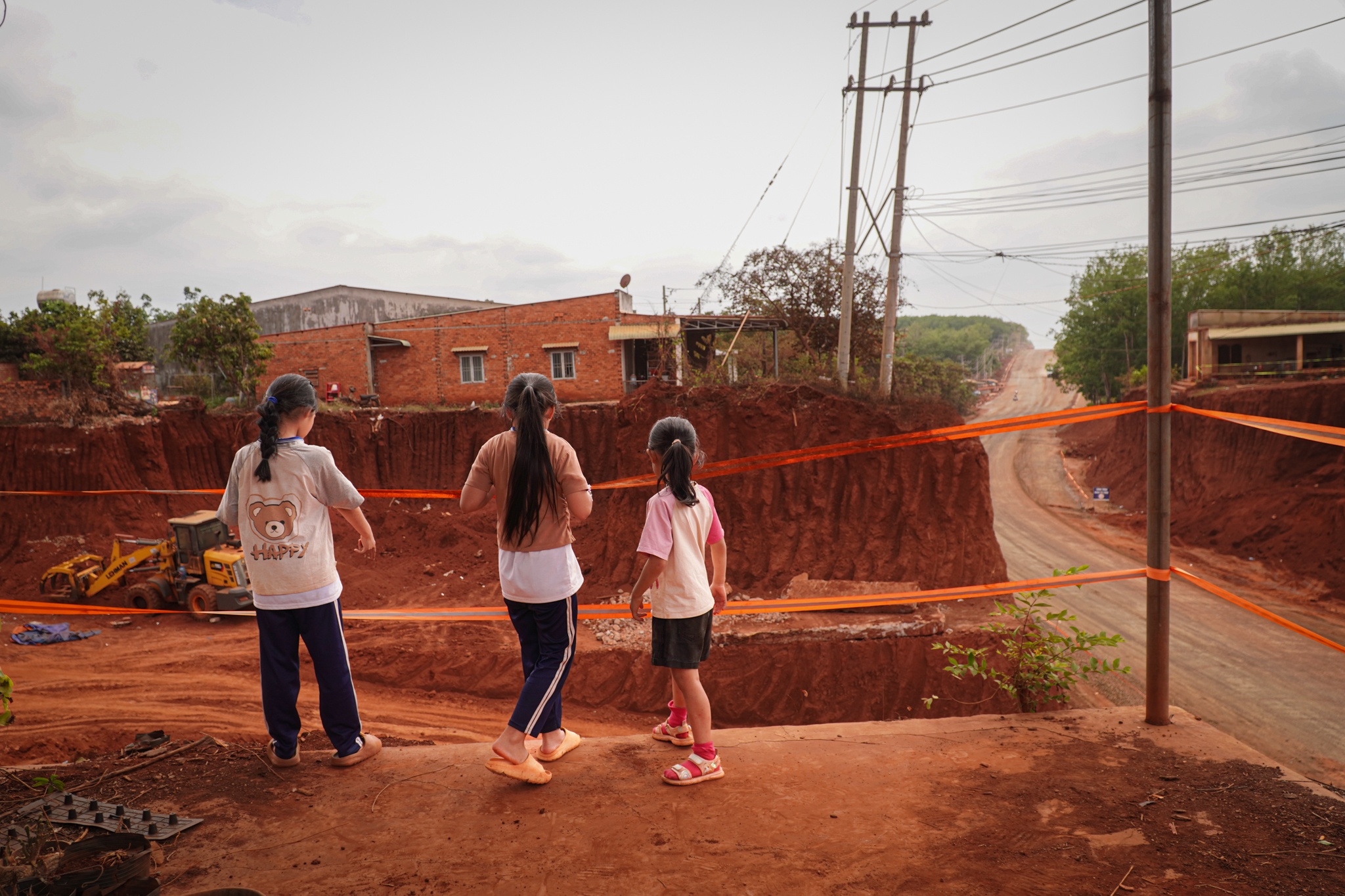 Chị Mộng Cầm gọi đó là “viễn cảnh chưa bao giờ nghĩ tới”. Gia đình chị và 7 hộ dân khác luôn canh cánh nỗi lo sạt lở khi mùa mưa đến gần, giao thông bị cô lập và những ngày sống giữa bụi đỏ, bụi trắng từ công trình.
