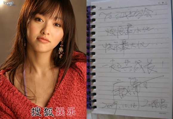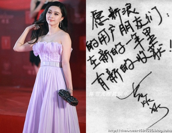 | Phạm Băng Băng viết chữ khá ẩu. |