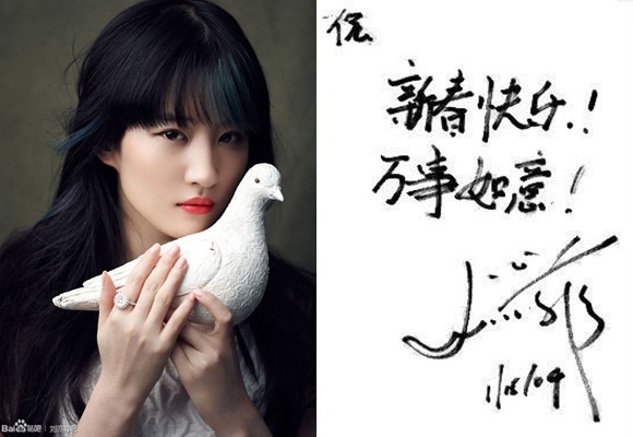 | Lưu Diệc Phi cũng bị chê có chữ viết rối. |
