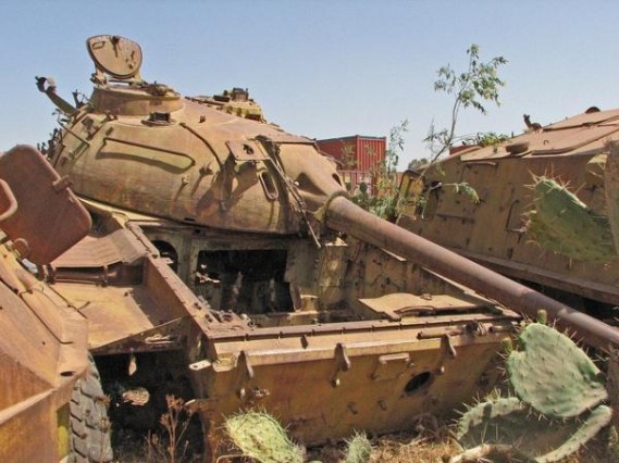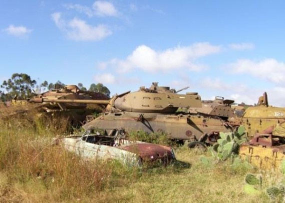 Nghĩa địa xe tăng ở Asmara, thủ đô quốc gia Eritrea nằm ở vùng Sừng châu Phi là nơi yên nghỉ của hàng trăm, thậm chí là hàng ngàn phương tiện quân sự, bao gồm xe tăng, xe bọc thép và xe tải. Chúng nằm la liệt trên mặt đất, xếp chồng lên nhau hoặc bị xương rồng che phủ vì nhiều năm phơi mưa phơi nắng. |