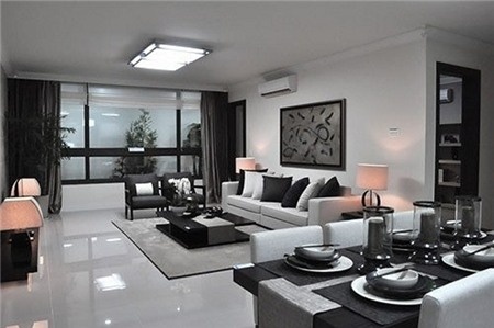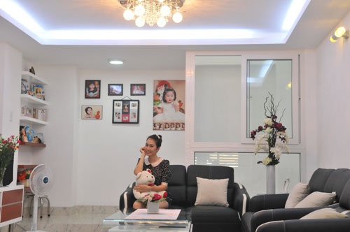 | Nhà của MC Thanh Thảo cũng không kém phần tinh tế. Phòng khách nổi bật với hai gam màu trắng đen treo nhiều ảnh lưu niệm của gia đình, đặc biệt là ảnh cô công chúa nhỏ. |