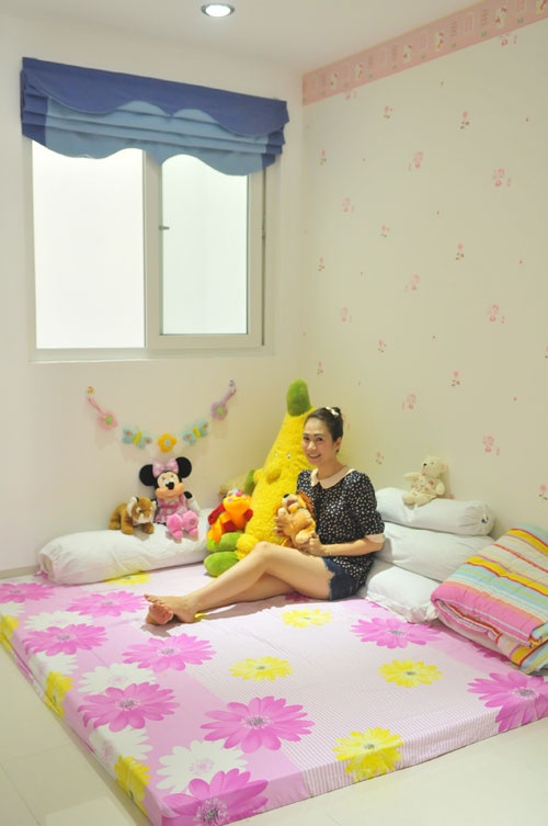 | Cô tập cho con tính tự lập sớm nên ngay từ nhỏ để cho con ngủ riêng. Phòng của "thiên thần nhỏ" được mẹ chọn tông màu hồng dễ thương. |