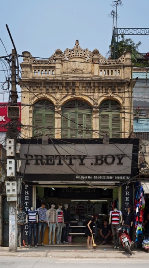 Những ngôi nhà mặt phố kiểu Pháp giờ được cơi nới, lợp mái tôn, treo biển quảng cáo, lắp ghép lên trên nền kiến trúc nguyên thủy, tạo thành lối kiến trúc "có một không hai".