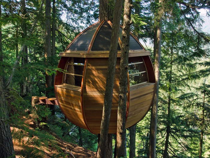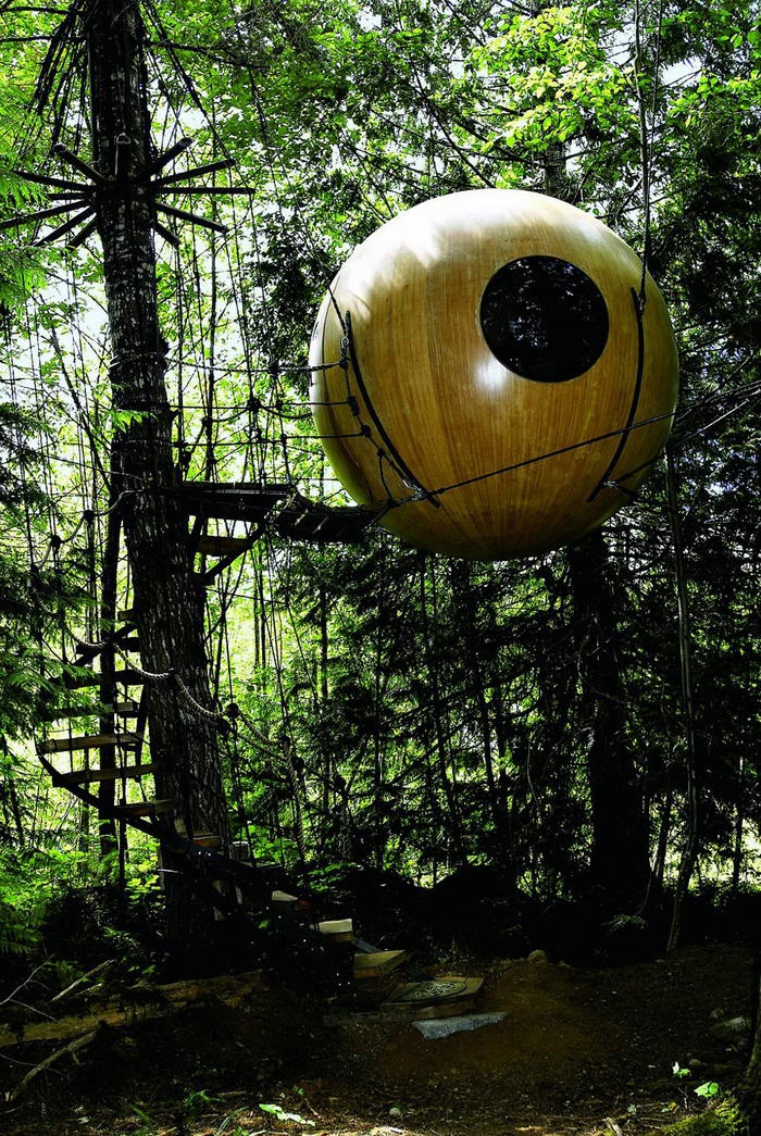 10. Free Spirit Spheres (Canada) Nằm ở Qualicum Beach, BC, Canada, người ta thường gọi đây là ngôi nhà trên cây dành cho người lớn với vẻ ngoài giống như một trái bóng tròn. Toàn bộ kiến trúc này được giữ bởi một hệ thống dây thừng rất phức tạp, cùng lối đi lên uốn lượn xung quanh thân cây khá cầu kỳ. |
