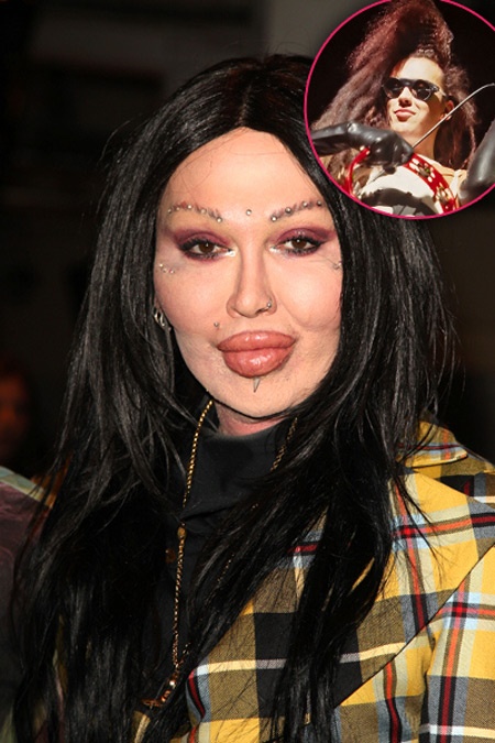 | Cựu thủ lĩnh ban nhạc Anh quốc Dead or Alive, Pete Burns, 53 tuổi được biết đến là người ham thẩm mĩ. Ông đã dùng gần hết số tiền tiết kiệm để phẫu thuật môi, cấy má, tạo hình mũi vài lần. |