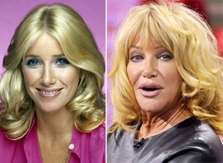 | Suzanne Somers thừa nhận chuyện phẫu thuật thẩm mỹ nhưng nhìn nữ diễn viên, nhiều người cho rằng bà đã tiến hành ít nhất 5 cuộc phẫu thuật là bơm má, nâng mũi, nâng mặt, tiêm botox vào môi và nâng mí mắt. |
