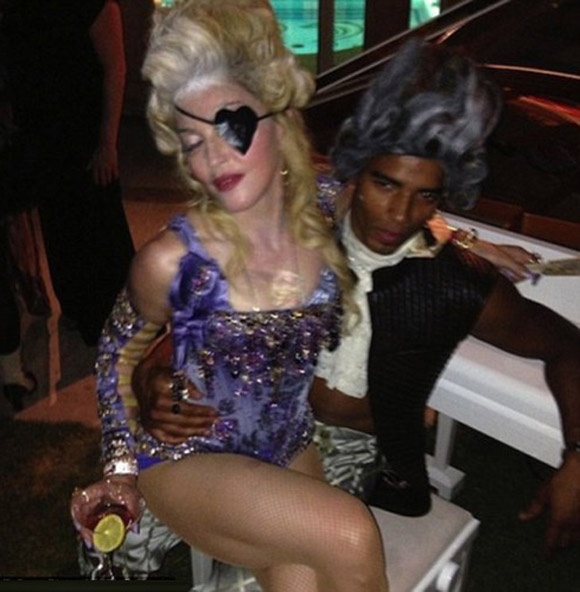 Dù đã ở độ tuổi ngũ tuần thế, nhưng "bà hoàng nhạc pop" vẫn không chịu kém cạnh đàn em về sự chịu chơi. Bằng chứng là trong sinh nhật lần thứ 55, Madonna đã ăn mặc rất hở hang, luôn quấn lấy bồ trẻ với chai rượu kè kè bên mình trong suốt bữa tiệc. Bà liên tục tạo dáng khiêu khích khi ngồi trong lòng “bạn trai”, để mặc cho mọi người chụp ảnh.