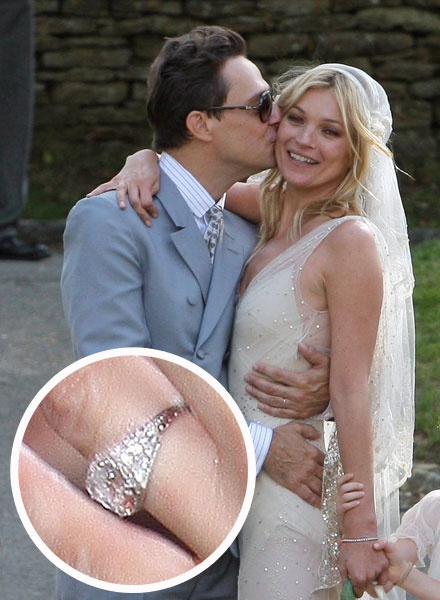 Trong sự kiện Glastonbury Festival hồi năm 2011, vì mải mê cổ vũ hôn phu Jamie Hince biểu diễn với nhóm nhạc The Kills mà siêu mẫu Kate Moss đã làm rơi nhẫn đính hôn. Sau khi phát hiện ngón tay áp út trống không, Kate không ngại lội bùn để tìm kiếm cùng với bạn bè giúp đỡ. Nhưng may mắn hơn Megan Fox, khi tưởng như không thể tìm thấy chiếc nhẫn nữa, Kate mới rút khăn giấy lau nước mắt thì bất ngờ nhìn thấy chiếc nhẫn. Cùng năm đó, cặp đôi cũng tổ chức đám cưới.