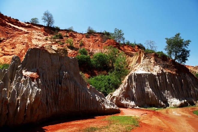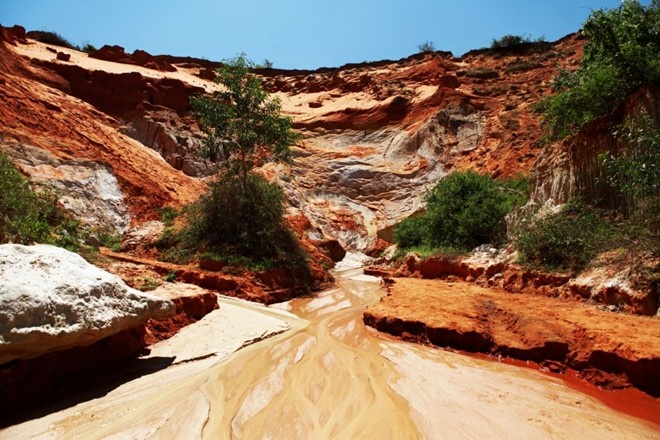 Suối Tiên là một khe nước nhỏ ngay cạnh Hòn Rơm, thuộc phường Mũi Né, thành phố Phan Thiết. Khác với các suối nước khác, suối Tiên có dòng nước đỏ cam do nhuộm màu của cát. Ảnh: Tuấn Đào.
