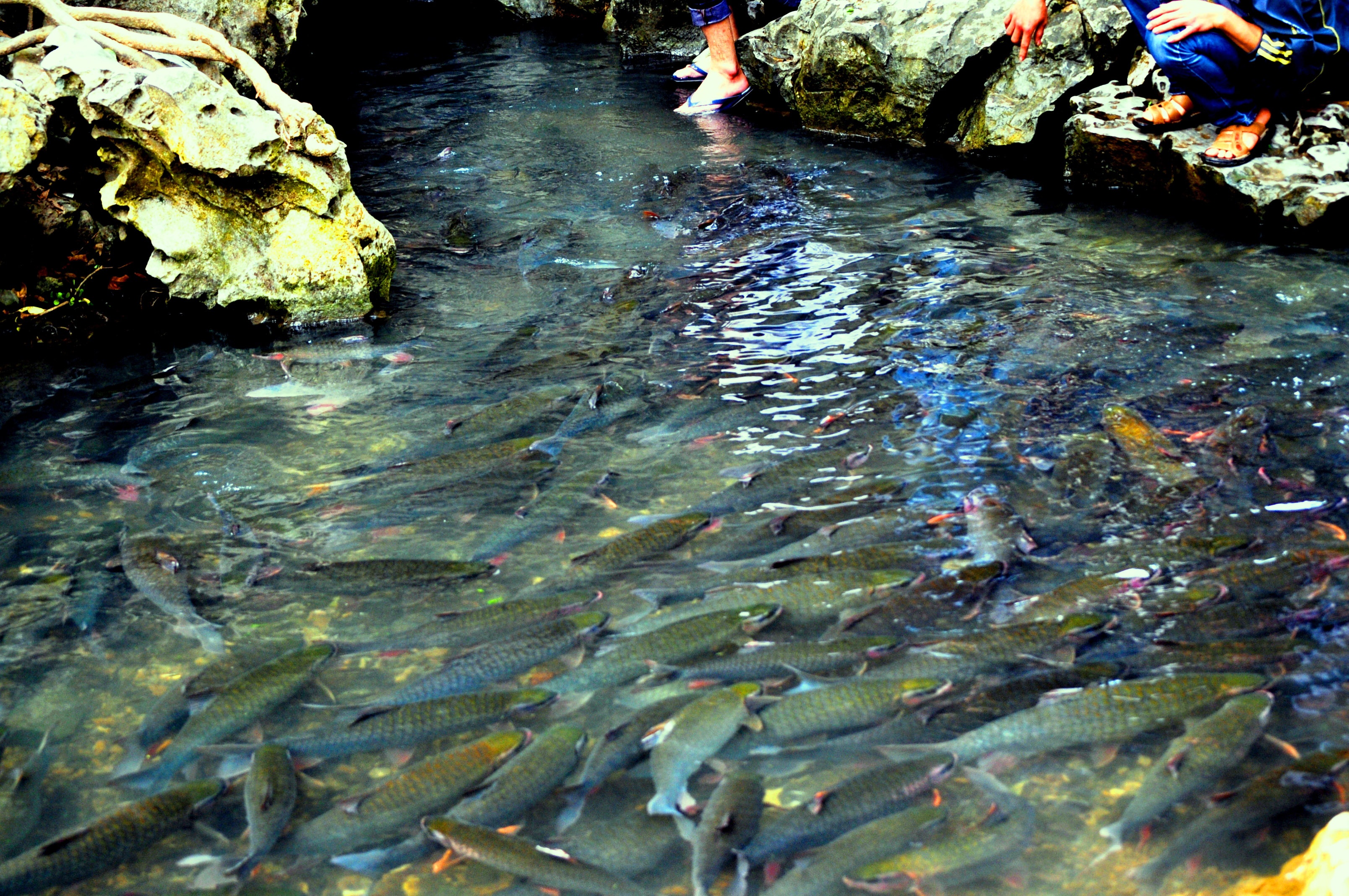Đàn cá ở suối cá thần này có hàng nghìn con. Mỗi con nặng từ 2-8 kg, riêng cá chúa nặng tới 30 kg. Tuy mật độ cá dày đặc, nước suối không bao giờ tanh. Người ta tin cá ở đây linh thiêng nên mọi người chỉ đến chiêm ngưỡng và cầu may. Ảnh: disanxanh.