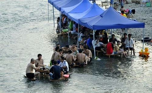| Mặc mưa lũ, nhậu vẫn cứ nhậu. |