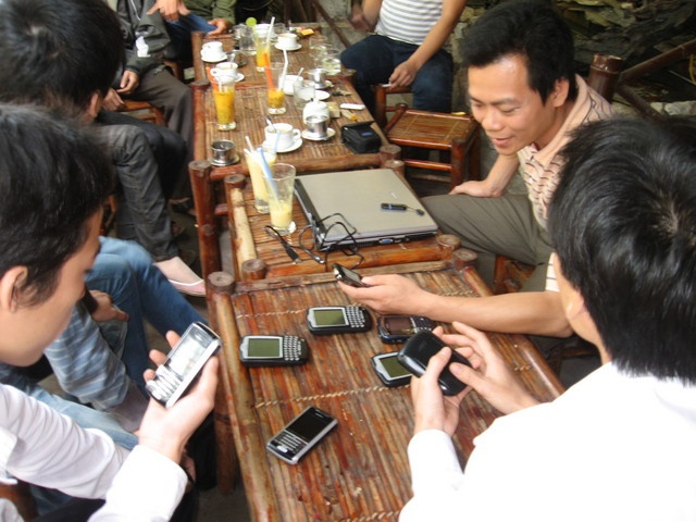 | Một buổi "offline" của những người đam mê BlackBerry. |