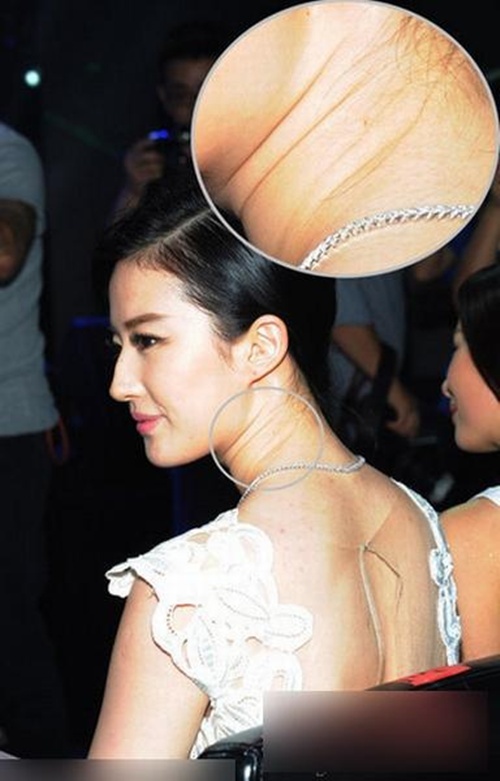 | Lưu Dệc Phi vốn luôn được đánh giá cao với vóc dáng mảnh mai và gương mặt thuần khiết. Thế nhưng, trong một sự kiện họp báo gần đây, vùng cổ của cô bị soi lộ ngấn mỡ minh chứng cho việc cô đang tăng cân. |