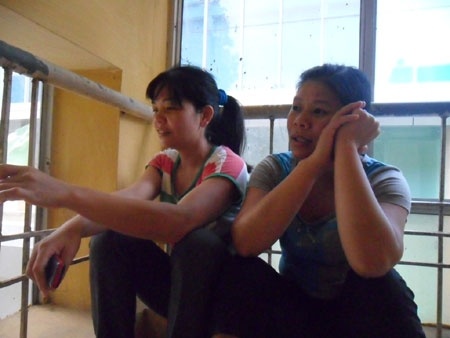 | Khi có thời gian các chị ở ngoài hành lang tám chuyện cho vơi bớt nỗi nhớ nhà. |