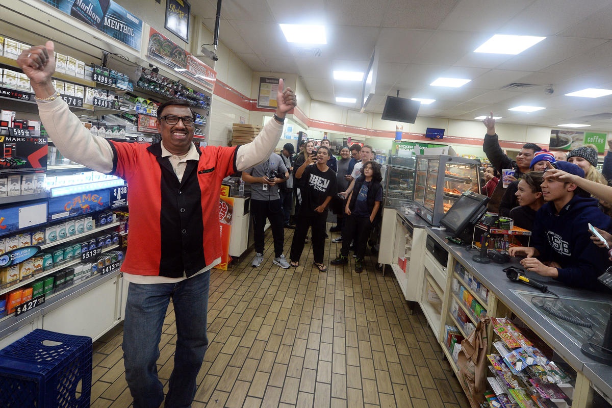 Chủ cửa hàng 7-Eleven tại Chino Hills mừng rỡ khi bán ra chiếc vé số trúng giải độc đắc. Ảnh: AP |