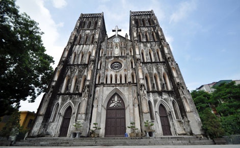 Nhà Thờ lớn Hà Nội. Có tên chính thức là NT Saint Joseph, xây dựng trong những năm 1884-1886, chủ yếu là gạch đất nung, tường trát bằng giấy bổi, khánh thành vào lễ Giáng sinh năm 1887, NT lớn Hà Nội (Chánh toà) được thiết kế theo phong cách kiến trúc Gothique, dài 64,5m, rộng 20,5m với hai tháp chuông cao 31,5m; trung tâm quảng trường phía trước NT có đài Đức Mẹ bằng kim loại; khu cung thánh trang trí theo nghệ thuật dân gian, chạm trổ, sơn son thiếp vàng rất độc đáo.