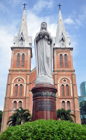 Được khởi công xây dựng từ năm 1877 phỏng theo NT Đức Bà ở Paris, khánh thành năm 1880 rồi vào năm 1894, hai tháp trên hai gác chuông được xây thêm và chiều cao của nhà thờ lên đến 57m, Tiểu Vương cung Thánh đường Đức Bà Sài Gòn nằm trong số những NT công giáo lớn nhất, xưa nhất ở Việt Nam, là một trong những NT đẹp nhất Việt Nam, cả về mặt kiến trúc và vị trí toạ lạc, đến năm 1959 được nâng lên hàng “Vương cung Thánh đường”.
