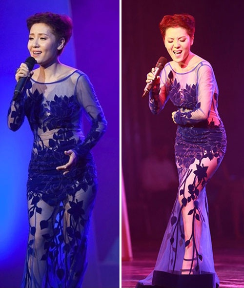 Sau khi xuống tóc, nữ ca sĩ sinh năm 1984 cũng lựa chọn những thiết kế có khoảng hở đốt mắt. Thậm chí, người đẹp Thanh Hóa cũng chẳng ngại mang một chiếc váy xuyên thấu trình diễn trên sân khấu ca nhạc.