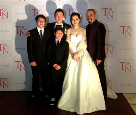 Hai cậu bé trông ra dáng người lớn trong ngày cưới của bố hồi cuối năm 2012. |