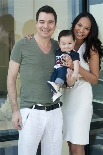 Gia đình hạnh phúc của Kim Hồng bên cậu con trai nhỏ giống hệt bố. |