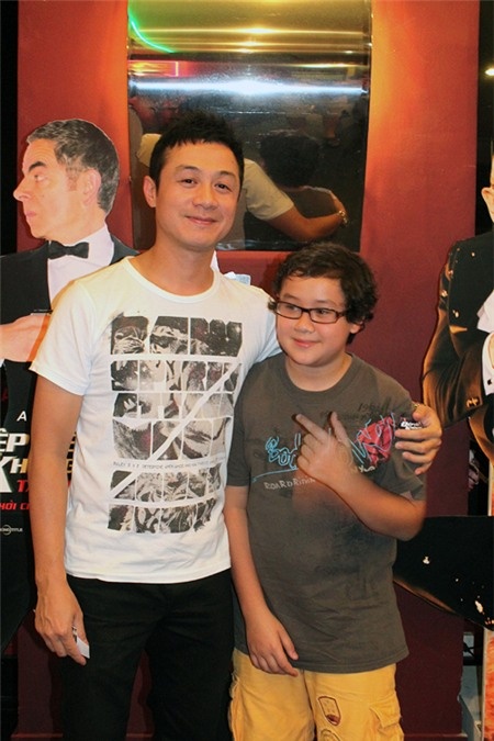 MC Anh Tuấn đưa con đầu lòng tên Alex, 13 tuổi đi xem phim. Cậu bé thông thạo 3 thứ tiếng và rất đam mê âm nhạc. |