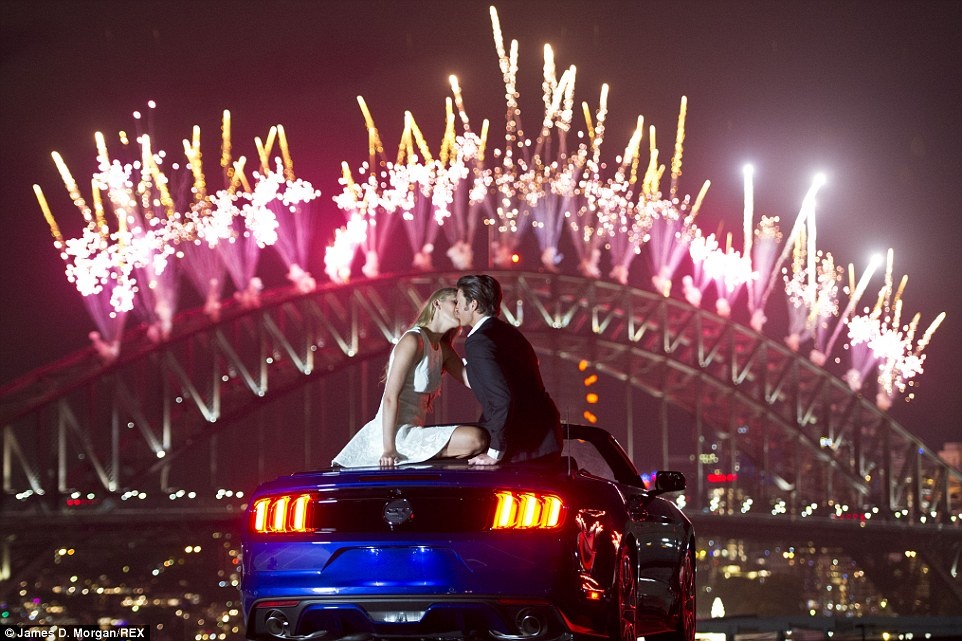 Demi Bryant, 22 tuổi, và người yêu, James Hundt, 28 tuổi, đứng trên đỉnh một tòa nhà cao tầng ở thành phố Sydney, Australia, trao nhau nụ hôn thắm thiết và cùng đón giao thừa. Ảnh: REX