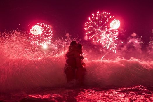 Giữa rừng ánh sáng pháo hoa tuyệt đẹp mừng năm mới 2015, các cặp đôi trao nhau những nụ hôn nồng ấm vào thời khắc chuyển giao giữa năm cũ và năm mới.