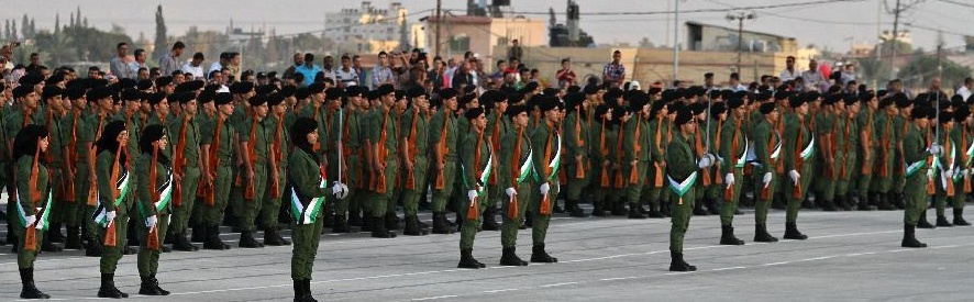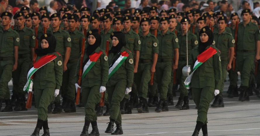 | Những sinh viên của ngành an ninh và khoa học quân sự thuộc Đại học Al-Istiqlal (Palestine) diễu hành trong lễ tốt nghiệp. Al-Istiqlal là đại học đầu tiên của Palestine đào tạo chuyên ngành về an ninh và khoa học quân sự. Ảnh: News.cn. |