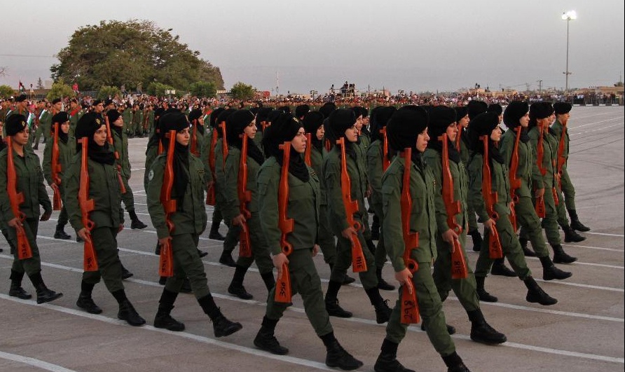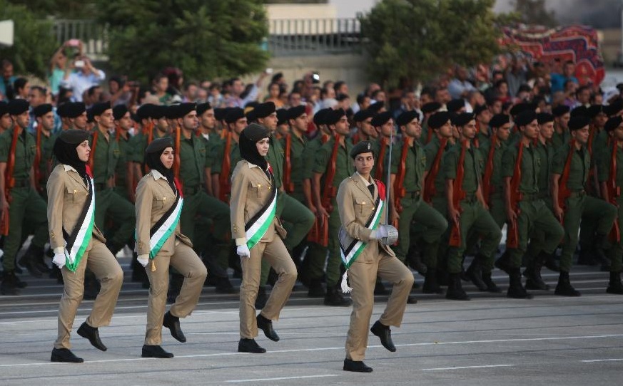 | Khoảng 200 học viên, bao gồm nhiều cô gái, vừa tốt nghiệp ngành an ninh và khoa học quân sự của Đại học Al-Istiqlal. Ảnh: News.cn. |