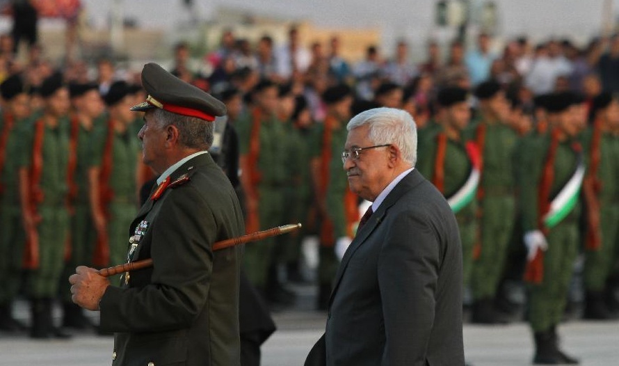 | Tổng thống Palestine Mahmoud Abbas (phải) tham dự lễ tốt nghiệp ngành an ninh và khoa học quân sự của Đại học Al-Istiqlal. Ảnh: News.cn. |